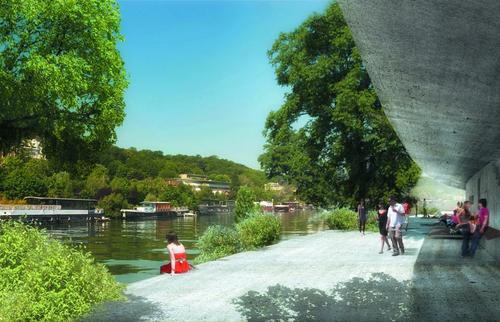 Une promenade sera créée le long des berges, sur la rive droite de l’île Seguin, et sera accompagnée d’espaces de détente et de sports. Enfin, une promenade continue permettra de faire le tour complet de l’île Seguin (copyright AJN - Promenades sur berges).