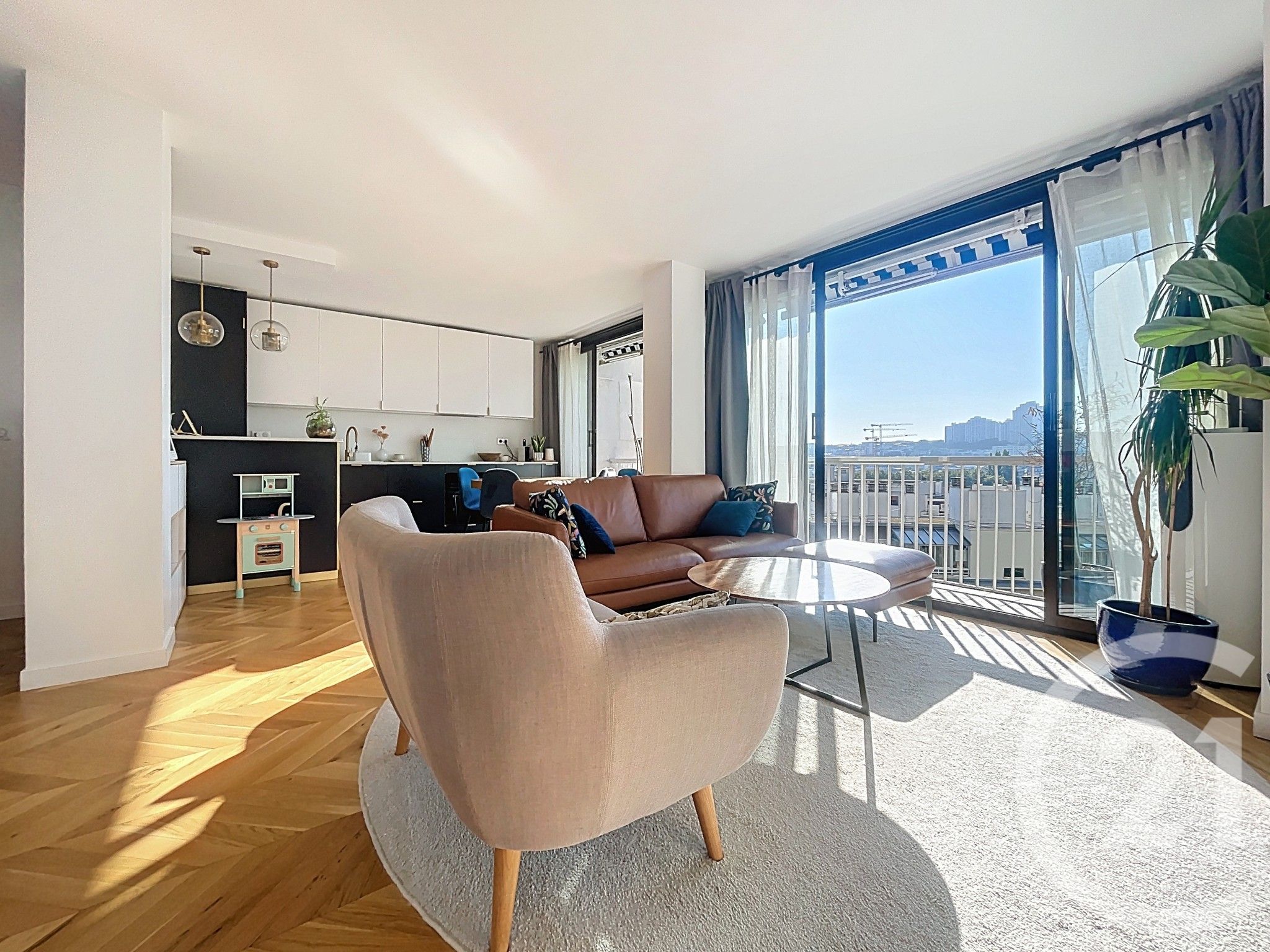 Situé au 9eme étage, il bénéficie d'une vue dégagée et d'une double exposition Nord-Sud, offrant une luminosité optimale à toute heure de la journée. Ses 90 m² s'articulent autour d'un vaste séjour de 32 m² ouvrant sur un balcon de 8 m² exposé plein sud, idéal pour profiter d'un café au lever du jour ou d'un verre en soirée. La cuisine, entièrement aménagée et équipée, séduit par ses finitions raffinées. L'espace nuit propose trois chambres de belle taille avec rangements, dont une suite parentale avec salle de bain privative, ainsi qu'une salle d'eau supplémentaire et un dressing indépendant.